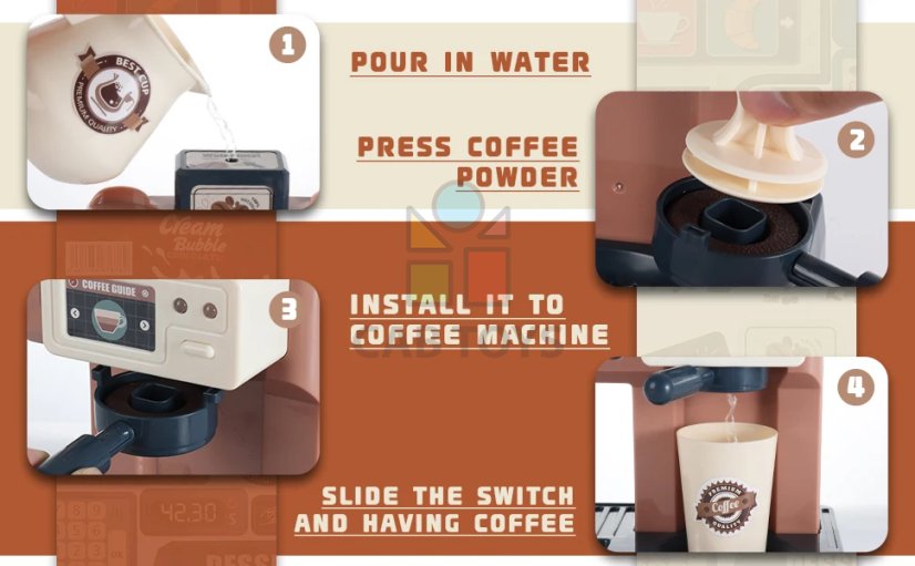 Pestrobarevné doplňky v kavárně pomáhají rozvíjet různé dovednosti vašich dětí. Při hře si procvičí kreativitu, představivost, kognitivní schopnosti, koordinaci ruky a oka, rozpoznávání barev a jemnou motoriku. Každý detail je pečlivě propracován, aby zanechal v dětech hluboký dojem a pomohl jim rychle se s předměty seznámit.