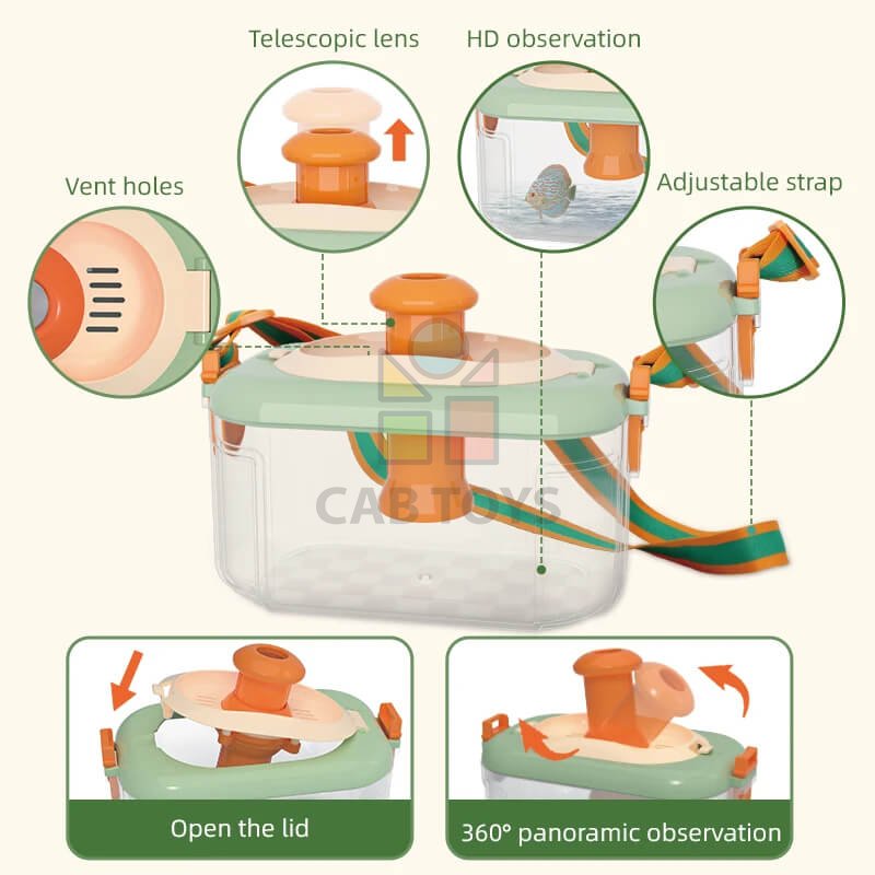 5. Bezpečnost na prvním místě : Všechny komponenty jsou navrženy s ohledem na bezpečnost dětí, včetně větracích otvorů v nádobě na hmyz a snadno použitelného periskopu.