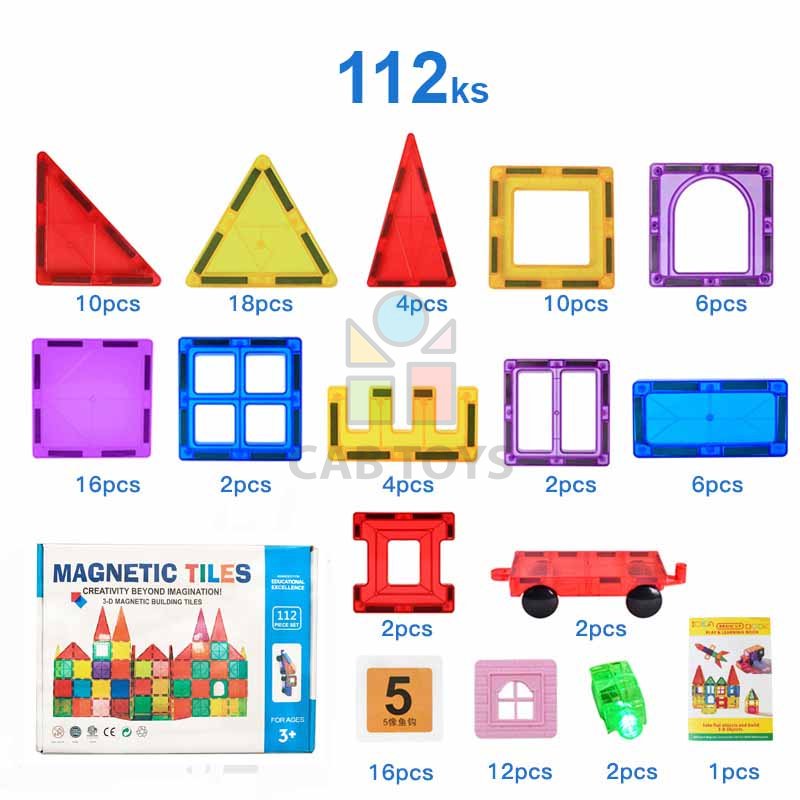 Magnetická stavebnice – Magnetic Tiles – 112 dílů