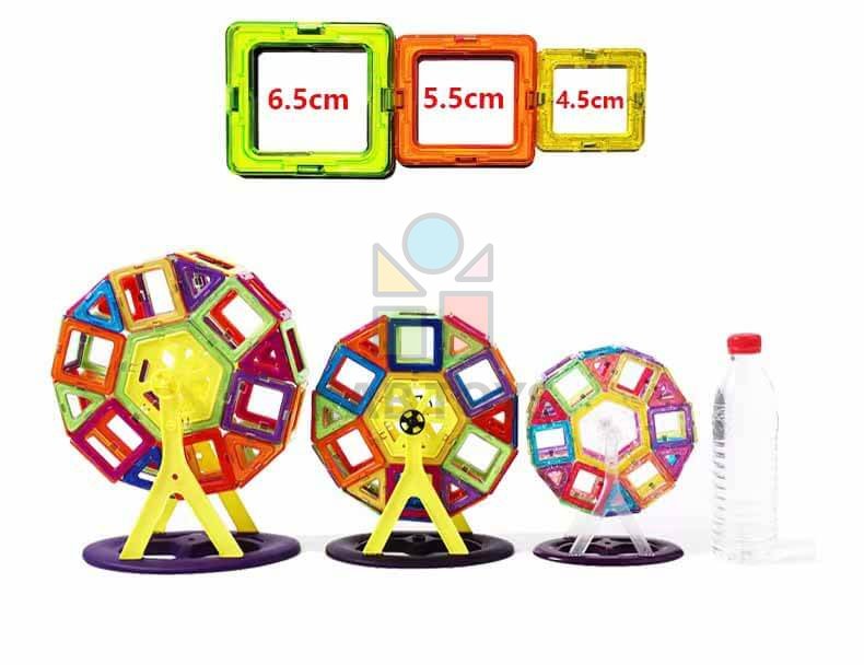 - XX magnetických kostek: Různých barev a tvarů, které poskytují nekonečné možnosti kombinací.
