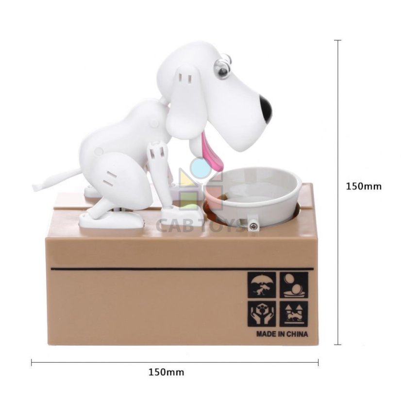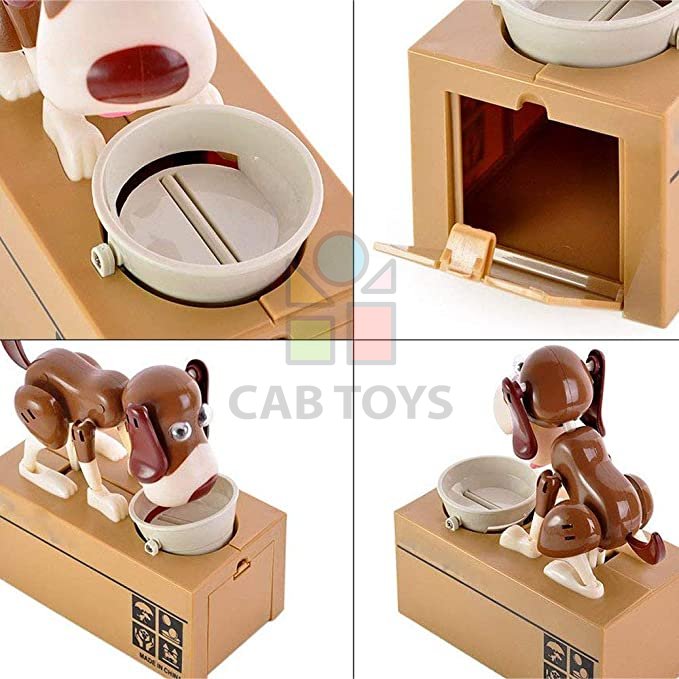 Funkčnost této pokladničky je jednoduchá, ale zajímavá. Po vložení mince do misky před pejskem se aktivuje mechanismus , který simuluje pohyb psa jedícího z misky.
